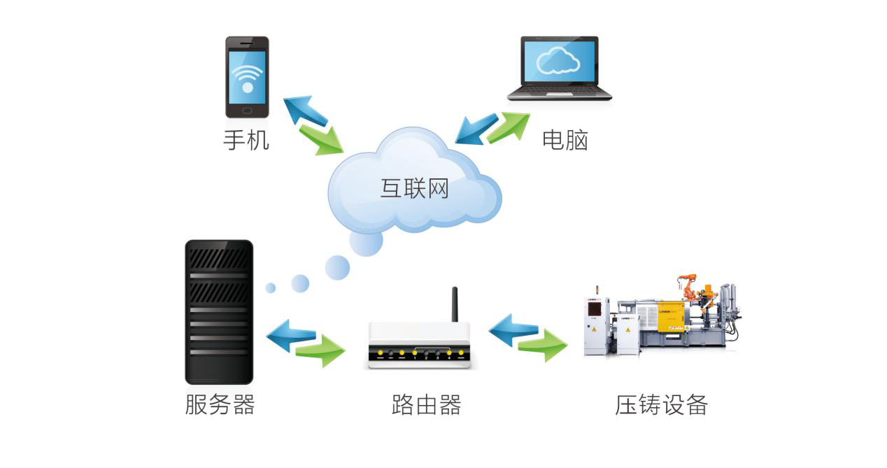 特別值得一提的是,聯升精密專為壓鑄機開發的網絡控制與傳輸功能,能夠實現對整個壓鑄車間設備和生產過程的信息化管理。聯網后可隨時隨地通過智能手機或電腦掌控壓鑄機及壓鑄生產過程,從而提升壓鑄生產管理水平,提高生產效率,真正為企業實現降本增效。