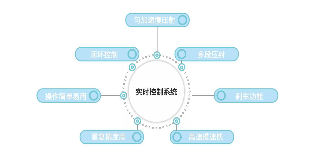 在操作系統上,聯升精密冷室壓鑄機采用十段壓射速度設定,并在單次壓射中可實時反饋及控制,操作簡單、設定方便、工藝參數范圍廣,可滿足各種復雜產品的工藝要求;在低速段可實現無沖擊啟動壓射,壓射錘頭平穩移動,可在最大程度上減少空氣卷入金屬熔液內,從而提升鑄件質量;除此之外,聯升利用閉環反饋控制,可在充型接近完成時進行剎車控制,用來減少飛邊問題,并延長模具使用壽命;聯升精密冷室壓鑄機的實時控制系統以大流量、高響應的伺服閥進行有效的縮短提速時間,在滿足客戶需求的基礎上,既保證了產品的外觀品質,又減少了產品內部的的空氣含量。